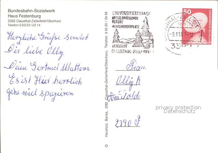 72503973 alte Postkarte Festenburg Clausthal-Zellerfeld Bundesbahn Sozialwerk Haus Festenburg postalisch gelaufen Erhaltung siehe scans KatCode: 11110003153004