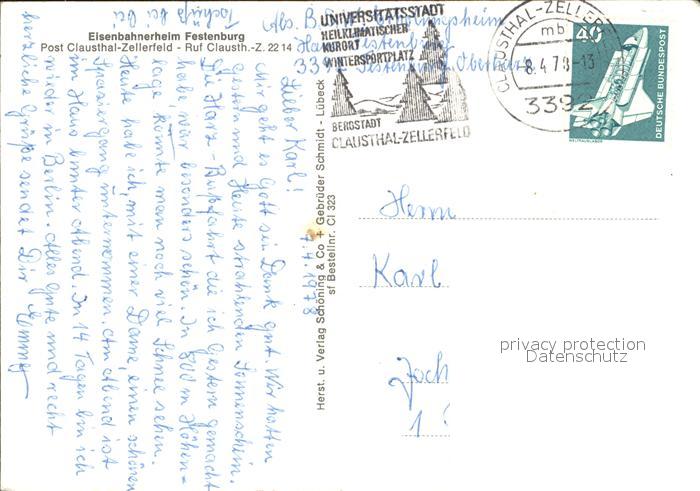 71991649 alte Postkarte Festenburg Clausthal-Zellerfeld Eisenbahnerheim postalisch gelaufen Erhaltung siehe scans KatCode: 11110003153004