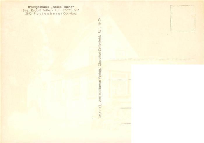 73887636 Festenburg Clausthal-Zellerfeld Oberharz Waldgasthaus Gruene Tanne postalisch nicht gelaufen Erhaltung siehe scans [WerneD78] KatCode: 11110003153004