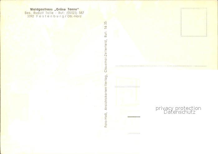 72420758 Festenburg Clausthal-Zellerfeld Waldgasthaus Gruene Tanne postalisch nicht gelaufen Erhaltung siehe scans KatCode: 11110003153004