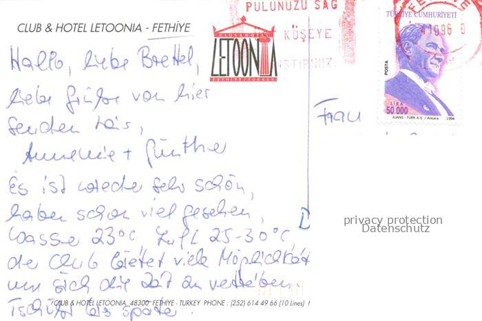 74144190 old postcard Fethiye Mugla TK Club Hotel Letoonia postalisch gelaufen Erhaltung siehe scans [SanaeD93] KatCode: 11530000000000
