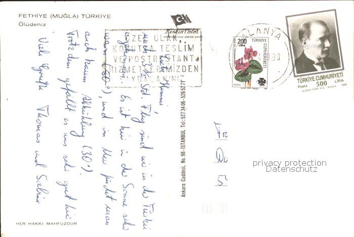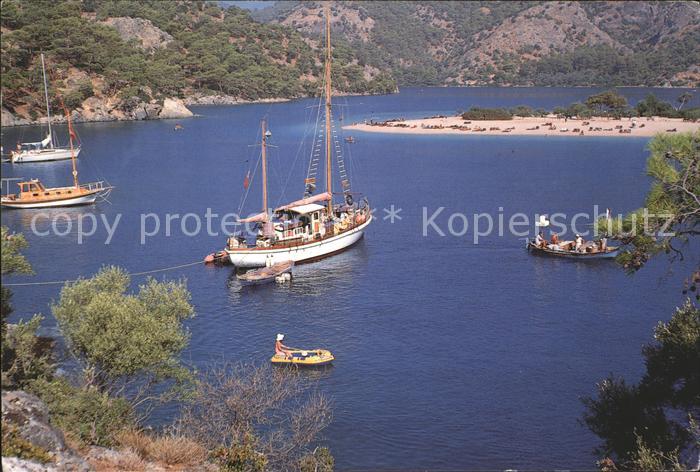 old postcard Fethiye Tuerkei Turkey Mugla oeluedeniz Segelboot Boot Bucht postalisch gelaufen Erhaltung siehe scans