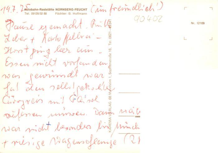 73884522 Feucht BAB Raststaette Nuernberg Feucht postalisch nicht gelaufen Erhaltung siehe scans [WerneD78] KatCode: 11110009574123