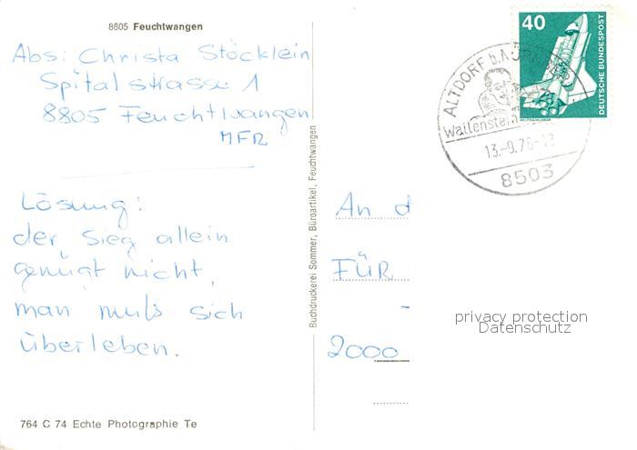 72982723 alte Postkarte Feuchtwangen Blick zur Kirche postalisch gelaufen Erhaltung siehe scans [FriedD77] KatCode: 11110009571145