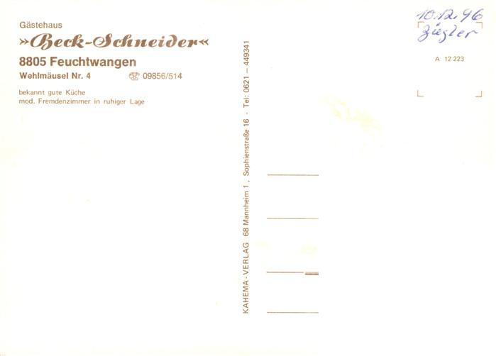 73898353 Feuchtwangen Gaestehaus Beck Schneider Gastraeume Speisesaal postalisch nicht gelaufen Erhaltung siehe scans [WerneD78] KatCode: 11110009571145