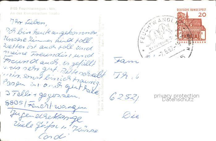 72296317 alte Postkarte Feuchtwangen Marktplatz Kreuzgang Jugendheim Tuermemotiv Bruecke postalisch gelaufen Erhaltung siehe scans KatCode: 11110009571145