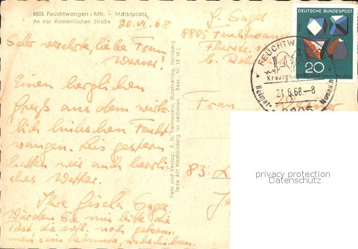 71939344 alte Postkarte Feuchtwangen Marktplatz Romantischen Strasse postalisch gelaufen Erhaltung siehe scans KatCode: 11110009571145