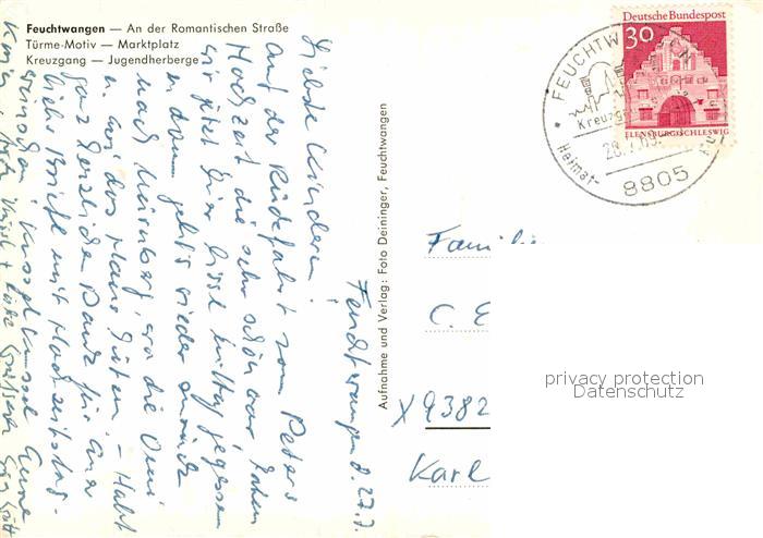 72759449 alte Postkarte Feuchtwangen Tuerme Ortsmotiv Marktplatz Kreuzgang Jugendherberge postalisch gelaufen Erhaltung siehe scans [FriedD77] KatCode: 11110009571145