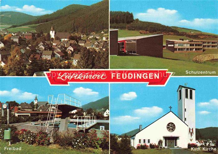 74100669 alte Postkarte Feudingen Bad Laasphe NRW Panorama Schulzentrum Freibad Kath Kirche postalisch gelaufen Erhaltung siehe scans [WerneD78] KatCode: 11110005970028