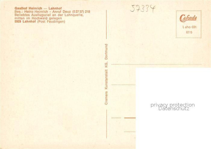 73867074 Feudingen Gasthof Heinrich Lahnhof Restaurant Pferdekoppel Landschaft postalisch nicht gelaufen Erhaltung siehe scans [FriedD77] KatCode: 11110005970028