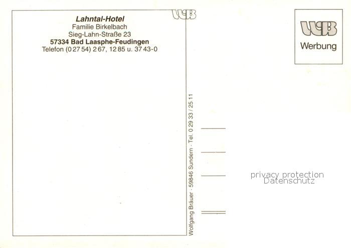 73615855 Feudingen Lahntal Hotel Gaststube Zimmer postalisch nicht gelaufen Erhaltung siehe scans [WerneD78] KatCode: 11110005970028