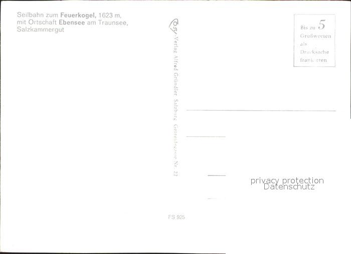 71908759 Feuerkogel Seilbahn Ebensee Traunsee Totes Gebirge Kasberg postalisch nicht gelaufen Erhaltung siehe scans KatCode: 11390124031120