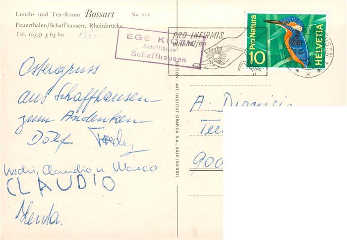 13875953 alte Postkarte Feuerthalen Lunch und Tea Room Bossart mit Schlossblick postalisch gelaufen Erhaltung siehe scans [WerneD78] KatCode: 11470260865090