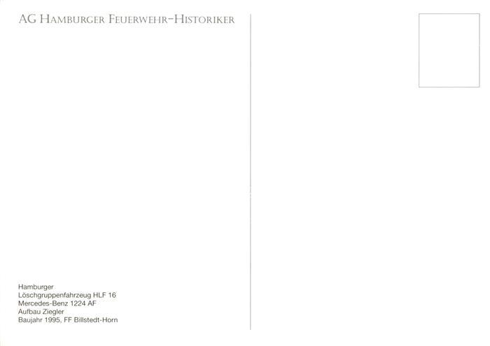 73912319 Feuerwehr Fire-Brigade Pompiers Bomberos AG Hanburger Feuerwehr Historiker HLF 16 Mercedes-Benz 1224 AF postalisch nicht gelaufen Erhaltung siehe scans [IrynaD87] KatCode: 22060000006700