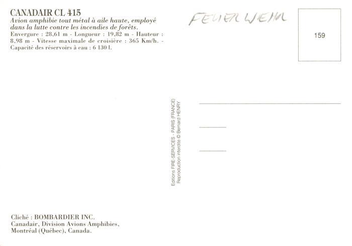 73915556 Feuerwehr Fire-Brigade Pompiers Bomberos Canadair CL 415 postalisch nicht gelaufen Erhaltung siehe scans [IrynaD87] KatCode: 22060000006700