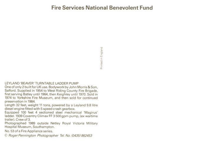 73942594 Feuerwehr Fire-Brigade Pompiers Bomberos Leyland Beaver Turntable Ladder Pump postalisch nicht gelaufen Erhaltung siehe scans [IrynaD87] KatCode: 22060000006700