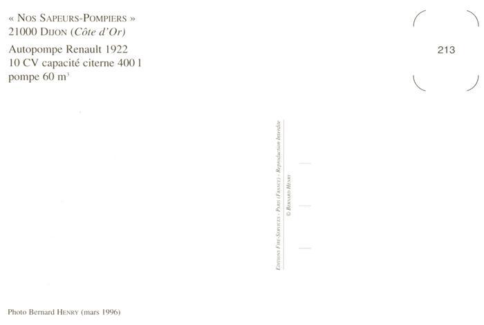 73912345 Feuerwehr Fire-Brigade Pompiers Bomberos Nos Sapeurs-Pompiers 21000 Duon Autopompe Renault 1922 10 CV postalisch nicht gelaufen Erhaltung siehe scans [IrynaD87] KatCode: 22060000006700