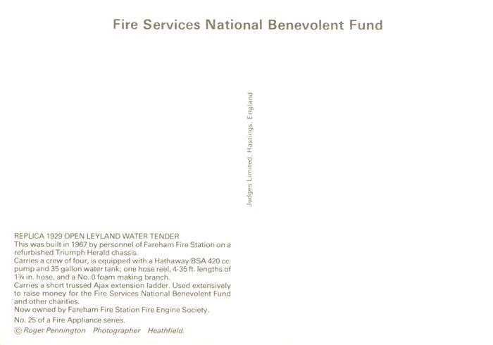 73944274 Feuerwehr Fire-Brigade Pompiers Bomberos Replica 1929 Open Leyland water tender postalisch nicht gelaufen Erhaltung siehe scans [IrynaD87] KatCode: 22060000006700