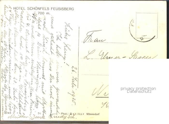 11643240 alte Postkarte Feusisberg Hotel Schoenfels postalisch gelaufen Erhaltung siehe scans KatCode: 11470170485438