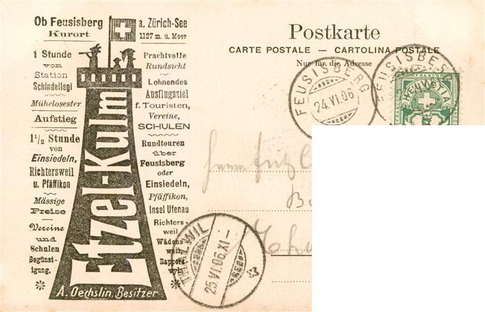 13934441 alte Postkarte Feusisberg SZ Etzel-Kulm Aussichtsturm postalisch gelaufen Erhaltung siehe scans [FriedD77] KatCode: 11470170485438