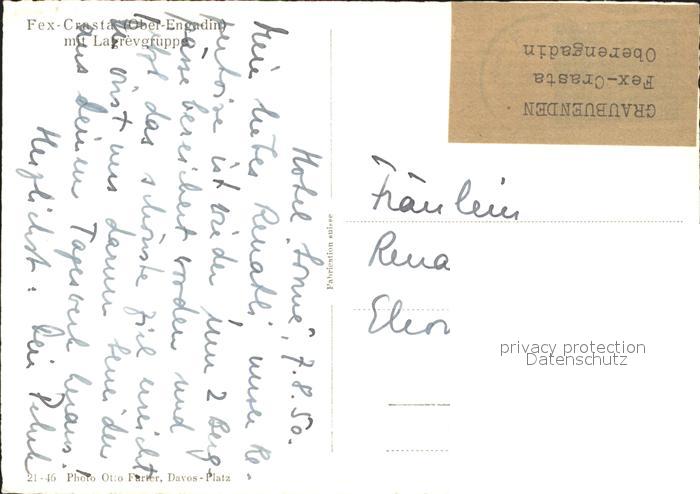 11634106 alte Postkarte Fex Crasta mit Lagrevgruppe postalisch gelaufen KatCode: 11470100335228