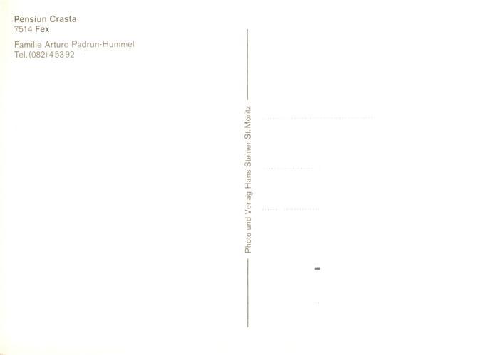 13894505 Fex Crasta Pension Crasta Gaststube Gastzimmer Terrasse postalisch nicht gelaufen Erhaltung siehe scans [WerneD78] KatCode: 11470100335228