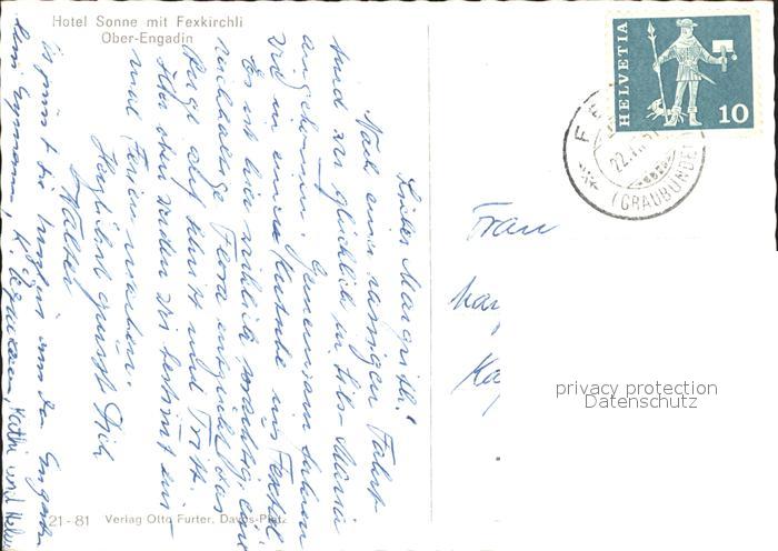11634107 alte Postkarte Fex Hotel Sonne im Fexkirchli postalisch gelaufen Erhaltung siehe scans KatCode: 11470100335228