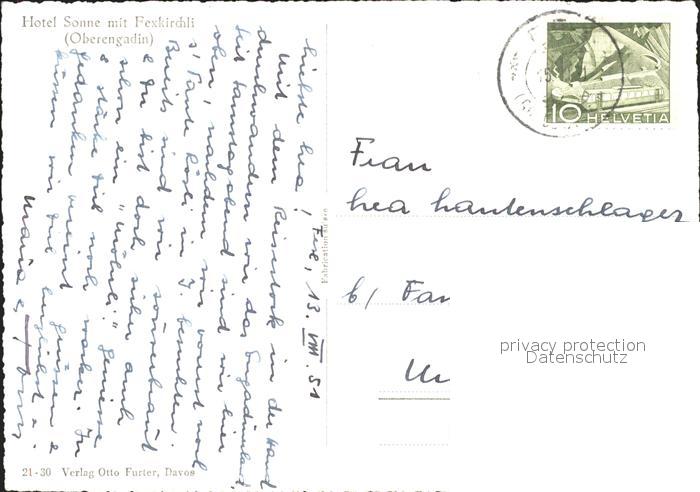 11634103 alte Postkarte Fex Hotel Sonne mit Fexkirchli postalisch gelaufen Erhaltung siehe scans KatCode: 11470100335228