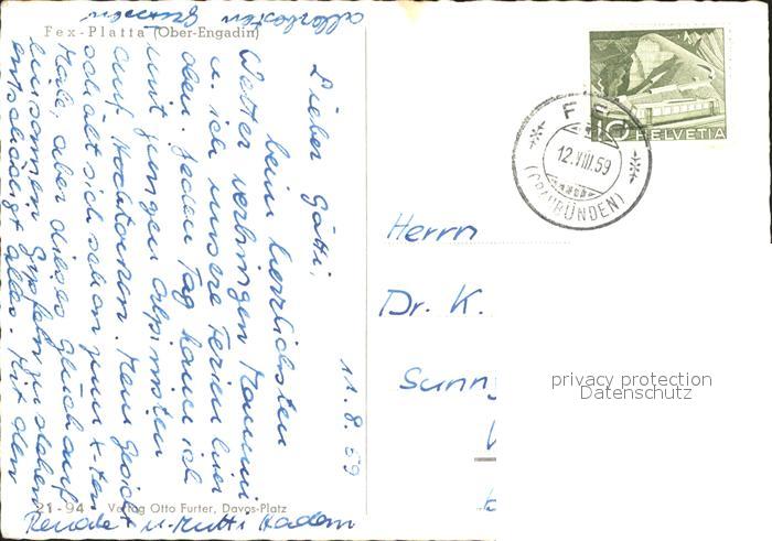 11634109 alte Postkarte Fex-Platta postalisch gelaufen Erhaltung siehe scans KatCode: 11470100335230