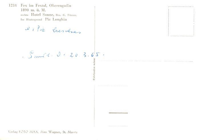 13908774 Fextal Val Fex Sils Maria GR Hotel Sonne mit Piz Longhin postalisch nicht gelaufen Erhaltung siehe scans [FriedD77] Frie Katcode 11470100335230