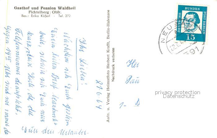 43348133 alte Postkarte Fichtelberg Bayreuth Gasthof Pension Waldheil postalisch gelaufen Erhaltung siehe scans [WerneD78] KatCode: 11110009472138