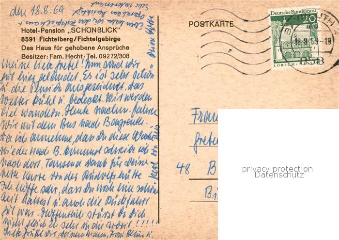 73091774 alte Postkarte Fichtelberg Bayreuth Hotel Pension Schoenblick postalisch gelaufen Erhaltung siehe scans [KathaD81] KatCode: 11110009472138