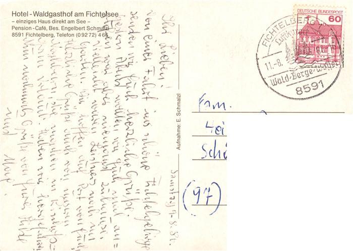 73946883 alte Postkarte Fichtelberg Fichtelgebirge Bayreuth Hotel Waldgasthof am Fichtelsee postalisch gelaufen Erhaltung siehe scans [FriedD77] KatCode: 11110009472138
