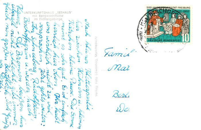 73916796 alte Postkarte Fichtelberg Fichtelgebirge Bayreuth Unterkunftshaus Seehaus mit Bergwachthuette postalisch gelaufen Erhaltung siehe scans [WerneD78] KatCode: 11110009472138