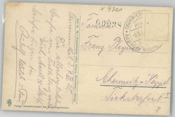70127547 alte Postkarte Fichtelberg Oberwiesenthal [handschriftlich] [Stempelabschlag] postalisch gelaufen KatCode: 11110014171240