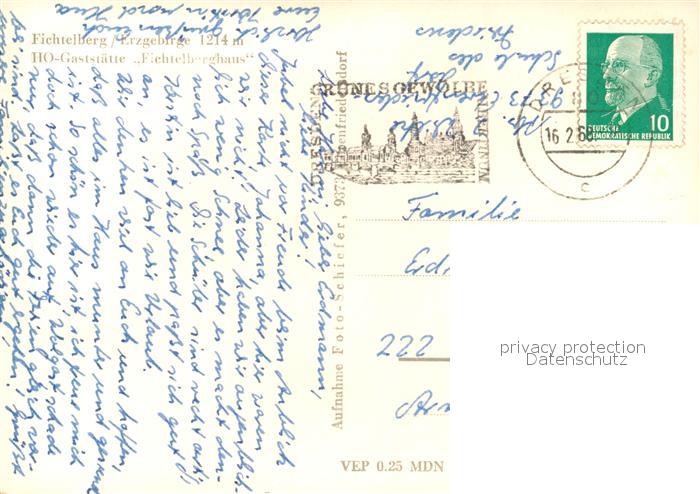 73102591 alte Postkarte Fichtelberg Oberwiesenthal HO Gaststaette Fichtelberghaus postalisch gelaufen Erhaltung siehe scans [KathaD81] KatCode: 11110014171240