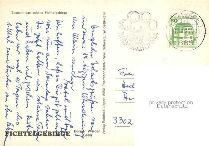 73182839 alte Postkarte Fichtelgebirge Bischofsgruen Fichtelberg Fichtelsee Asenturm Bad Berneck Warmensteinach Ochsenkopflift postalisch gelaufen Erhaltung siehe scans [WerneD78] KatCode: 11110009472138