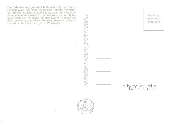 72937265 Fichtelgebirge Erholungszentrum Fichtelsee Waldwiesen Badespass Kinder Schwimmbecken Schutzhuette Jean Paul Brunnen postalisch nicht gelaufen Erhaltung siehe scans [WerneD78] KatCode: 11110009472138