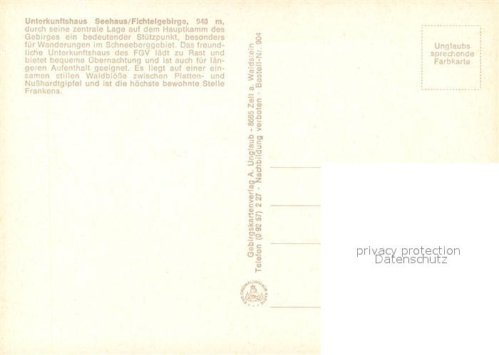 73070413 Fichtelgebirge Unterkunftshaus Seehaus postalisch nicht gelaufen Erhaltung siehe scans [WerneD78] KatCode: 11110009472138