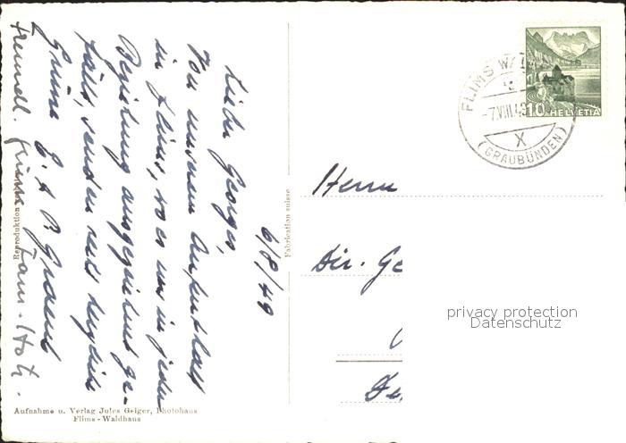 11634102 alte Postkarte Fidaz GR Flims Waldhaus postalisch gelaufen Erhaltung siehe scans KatCode: 11470100320124