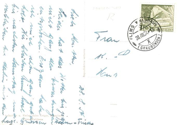 13890773 alte Postkarte Fidaz GR und Flims Waldhaus Fliegeraufnahme postalisch gelaufen Erhaltung siehe scans [WerneD78] KatCode: 11470100320124