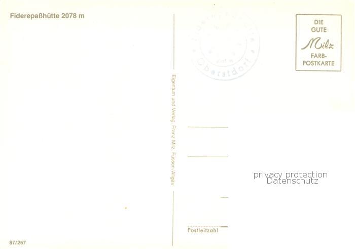 73786183 Fiderepasshuette 2078m Oberstdorf Ansicht postalisch nicht gelaufen Erhaltung siehe scans [FriedD77] KatCode: 11110009780133