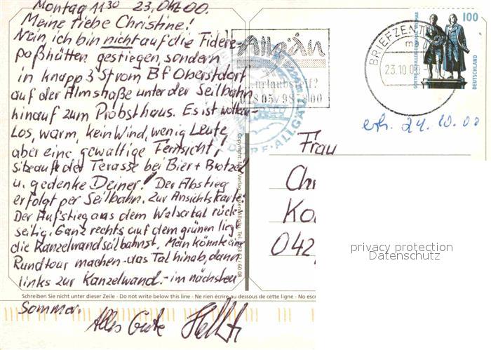 72750405 alte Postkarte Fiderepasshuette Alpenpanorama Bergwandern Allgaeuer Alpen postalisch gelaufen Erhaltung siehe scans [FriedD77] KatCode: 11110009780133