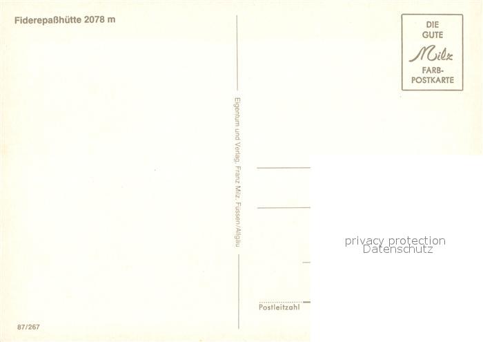 73243905 Fiderepasshuette Berghuette Allgaeuer Alpen postalisch nicht gelaufen Erhaltung siehe scans [FriedD77] KatCode: 11110009780133