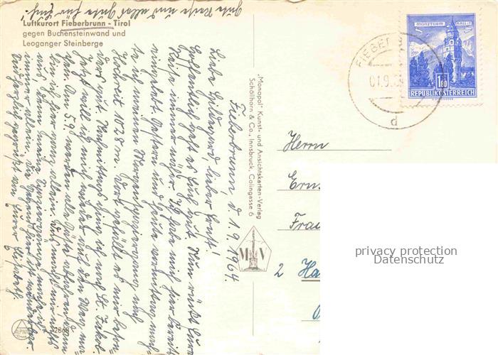 74153130 alte Postkarte Fieberbrunn Kitzbuehel Tirol AT Buchensteinwand und Leoganger Steinberge postalisch gelaufen Erhaltung siehe scans [WerneD78] KatCode: 11390335070403