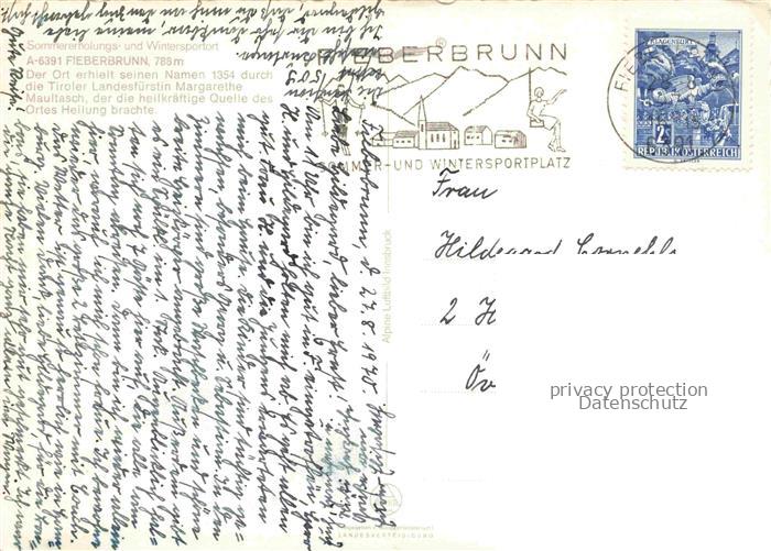 74152801 alte Postkarte Fieberbrunn Kitzbuehel Tirol AT Fliegeraufnahme mit Kaisergebirge postalisch gelaufen Erhaltung siehe scans [WerneD78] KatCode: 11390335070403