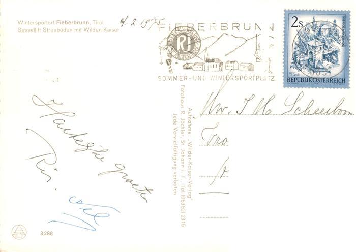 73904771 alte Postkarte Fieberbrunn Tirol AT Panorama Schiparadies Winterlandschaft Alpen postalisch gelaufen Erhaltung siehe scans [FriedD77] KatCode: 11390335070403