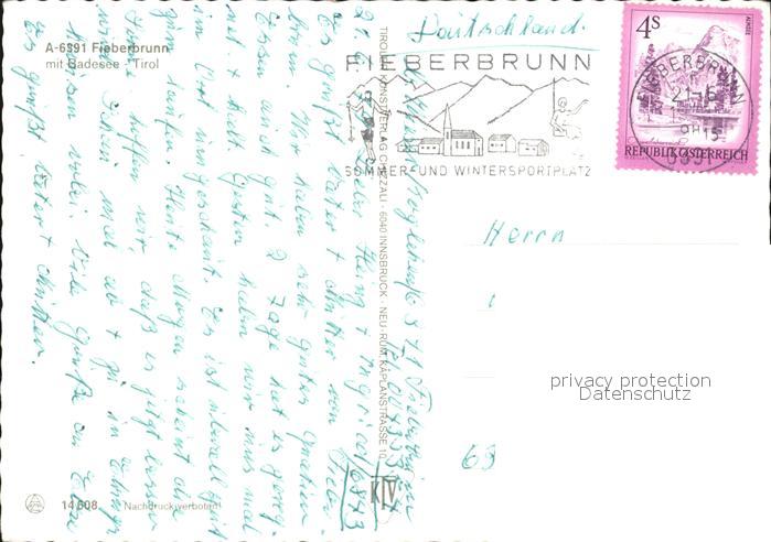 72395673 alte Postkarte Fieberbrunn Tirol Badesee Panorama postalisch gelaufen Erhaltung siehe scans KatCode: 11390335070403