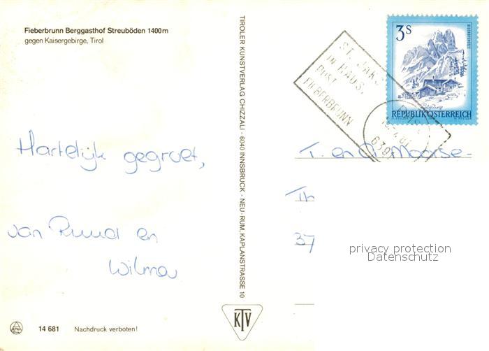 73063203 alte Postkarte Fieberbrunn Tirol Berggasthof Streuboeden gegen Kaisergebirge postalisch gelaufen Erhaltung siehe scans [FriedD77] KatCode: 11390335070403
