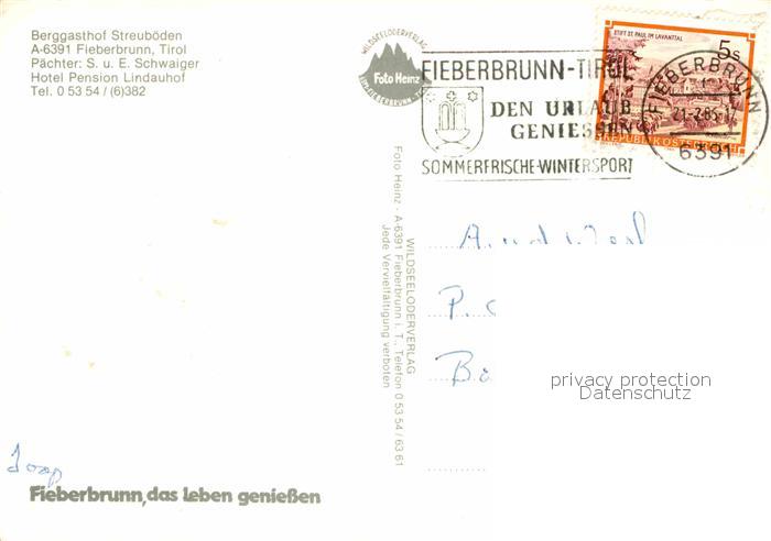 72862685 alte Postkarte Fieberbrunn Tirol Berggasthof Streuboeden postalisch gelaufen Erhaltung siehe scans [WerneD78] KatCode: 11390335070403